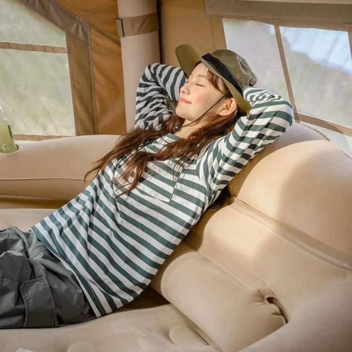 استمتع بنوم مريح أينما كنت مع السرير القابل للنفخ المزدوج المزود بمضخة مدمجة تعمل بكيبل USB لسهولة النفخ والتفريغ. يأتي السرير بتصميم داعم يضم مسندًا للظهر ومساند لليد مع مخدة مدمجة، إضافة إلى قواعد أكواب على جانبي المساند لراحة أكبر أثناء الاستخدام. يتميز بسطح ناعم صديق للبشرة وقاعدة مقاومة للتآكل والانزلاق، مع قدرة تحمل تصل إلى 300 كجم، ليكون خيارك المثالي للسفر والتخييم واستضافة الضيوف. كما يمكن طيه بسهولة ويوفره حقيبة تخزين لتسهيل الحمل والتنظيم.