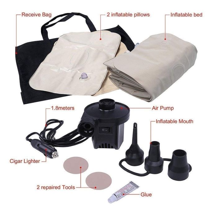صفقة اليوم هي مرتبة هوائية مع 2 وسادة للسيارة مع مضخة 143 × 87 ×45 سم