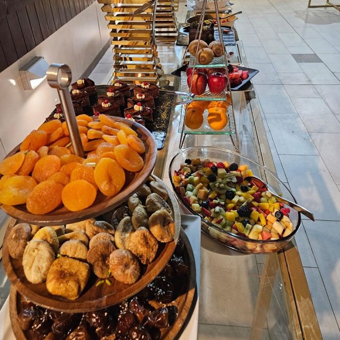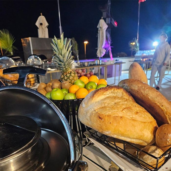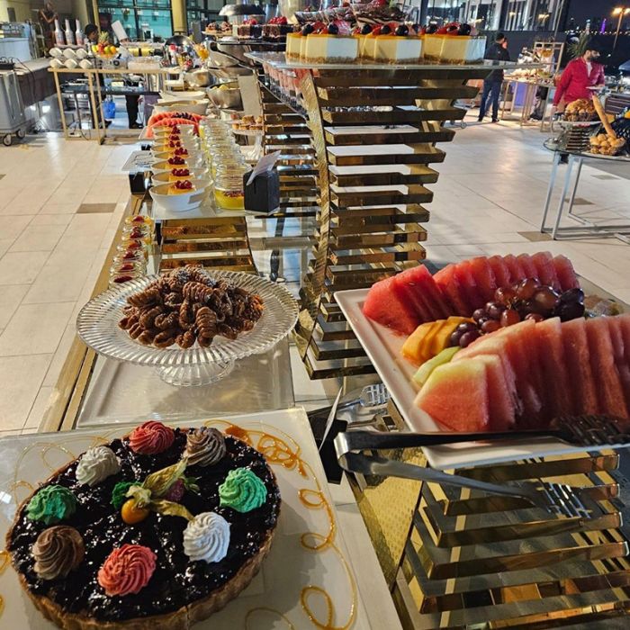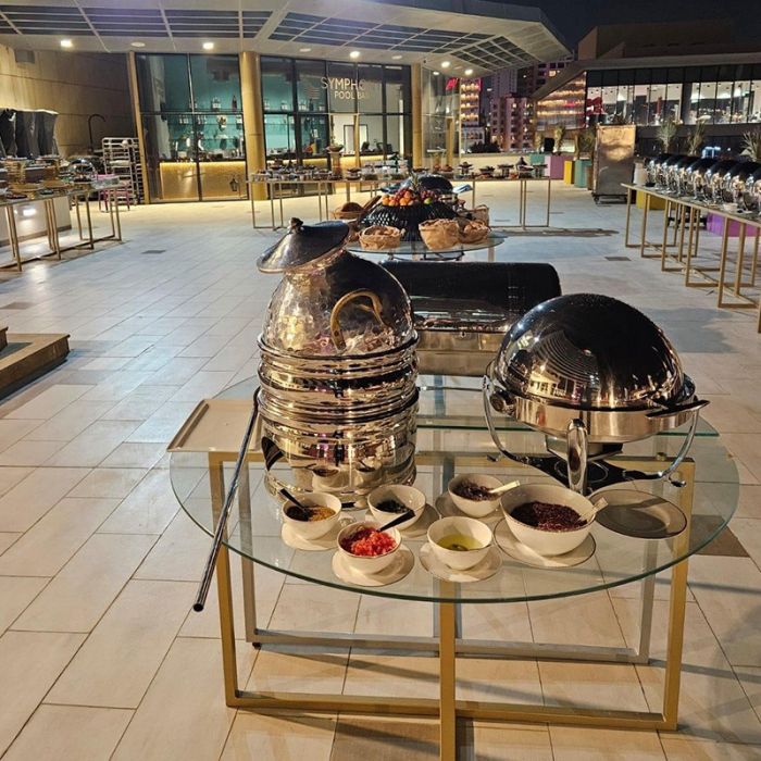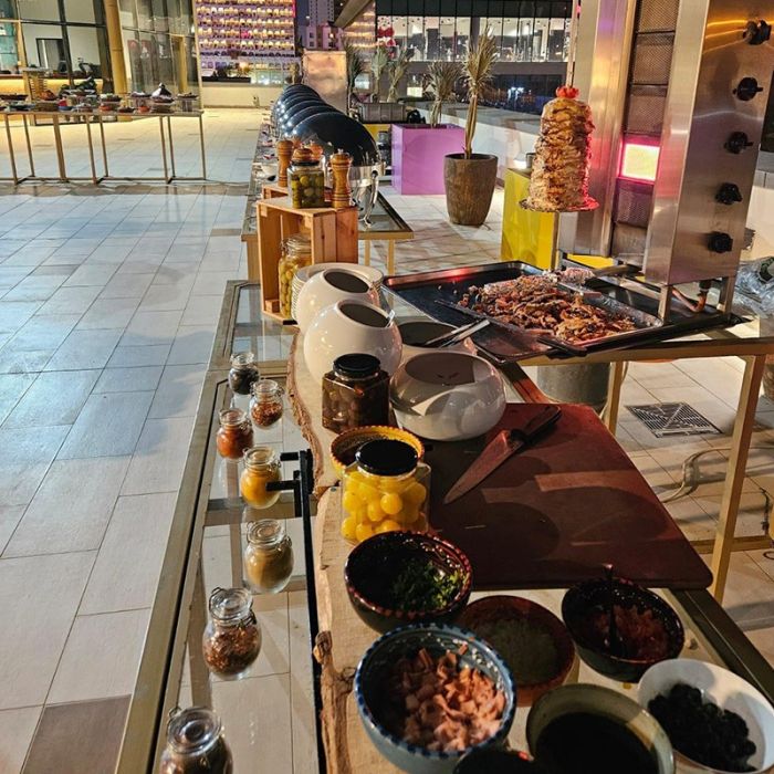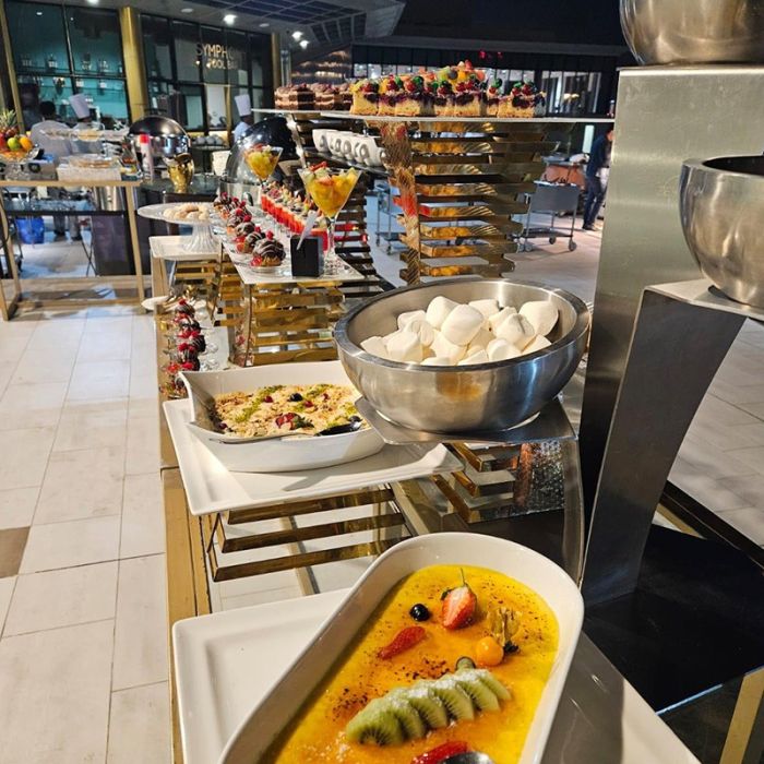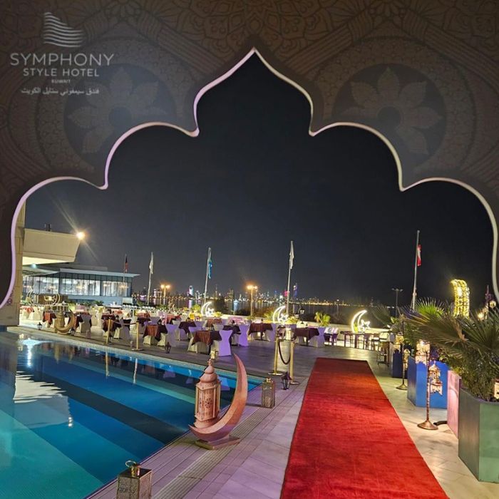 بوفيه غبقة عالمي على المسبح مع أنغام الموسيقى الحية في فندق سيمفوني ستايل