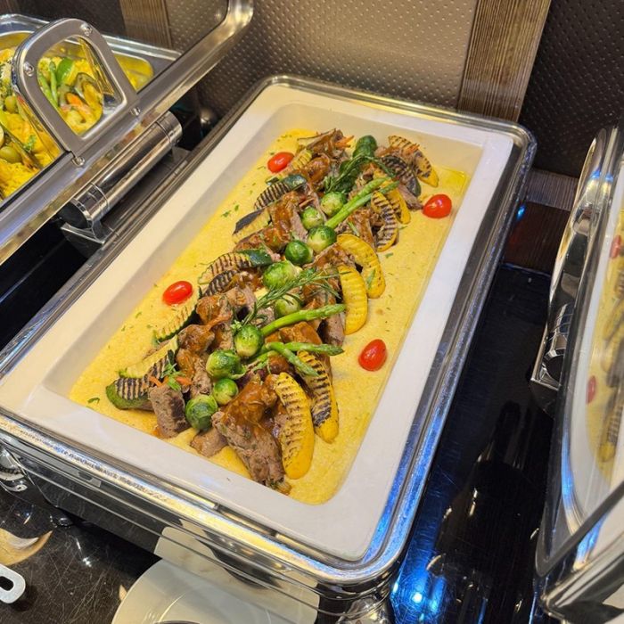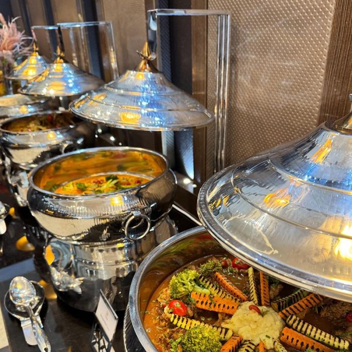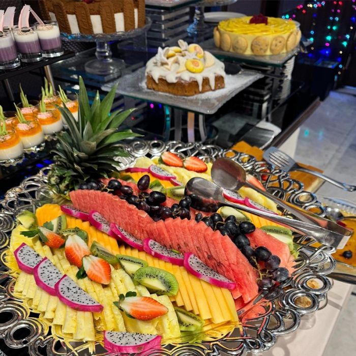 استمتع ببوفيه غداء عالمي كل جمعة وسبت أو بوفيه عشاء كل خميس أو جمعة أو سبت، واختر من بين أنواع مختلفة من الأطباق العالمية التي يعدها طهاة ماهرون في فندق الحمراء