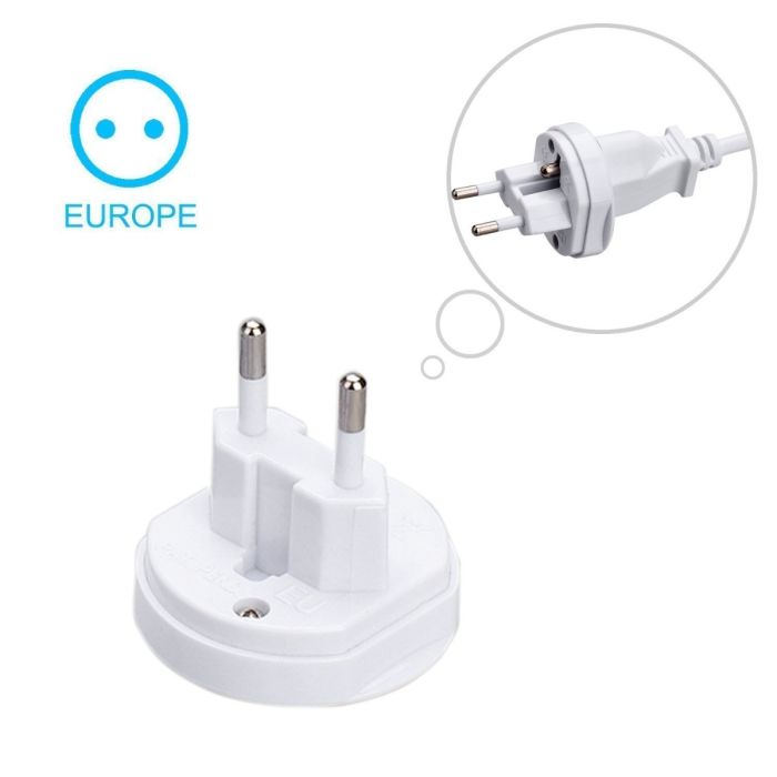 - هذا محول طاقة للسفر يناسب المقابس في الاتحاد الأوروبي/المملكة المتحدة/الولايات المتحدة الأمريكية/اليابان/أستراليا/إسبانيا، ومعظم دول العالم. مناسب لأكثر من 150 دولة، ومتوفر بمقابس من طراز أوروبا، والمملكة المتحدة، وإسبانيا، وأستراليا، واليابان. لا حاجة لإحضار محول إضافي لمختلف الدول.