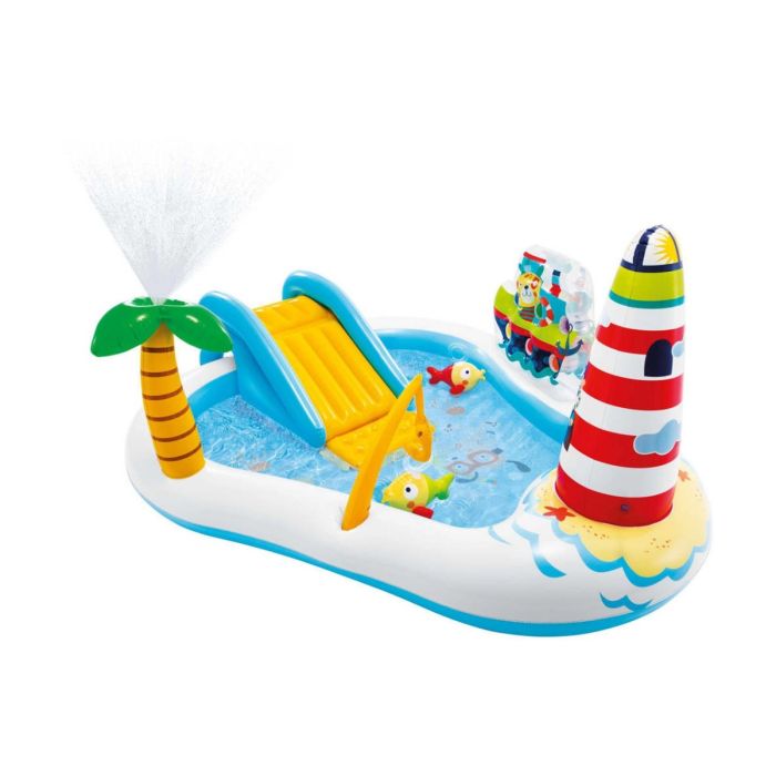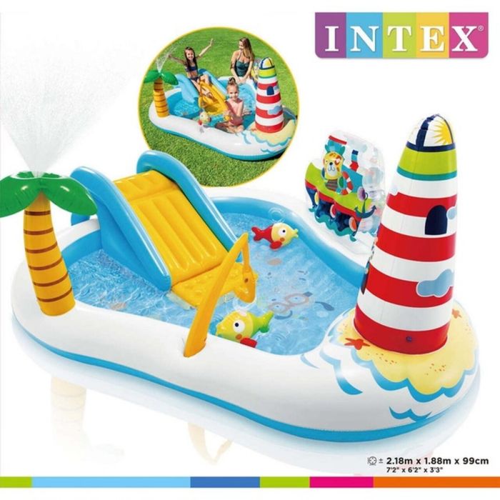 - يتميز مركز اللعب الممتع لصيد الأسماك القابل للنفخ من إنتكس أيضًا بمنزلق مائي يؤدي إلى المسبح، مما يوفر تجربة مثيرة لعشاق المغامرة.
