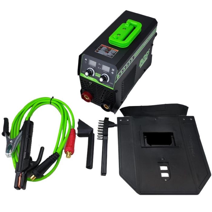 - الملحقات المرفقة: ماسك الأقطاب، مشبك تأريض، درع وجه، فرشاة تنظيف