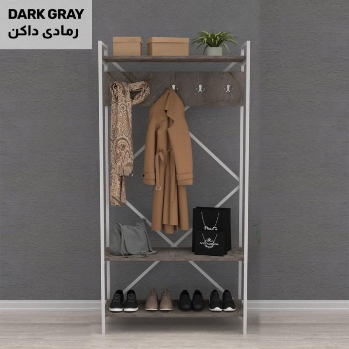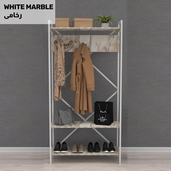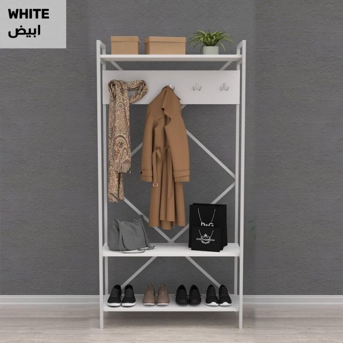 - هيكل حديدي قوي مع أرفف خشبية وعلاقات