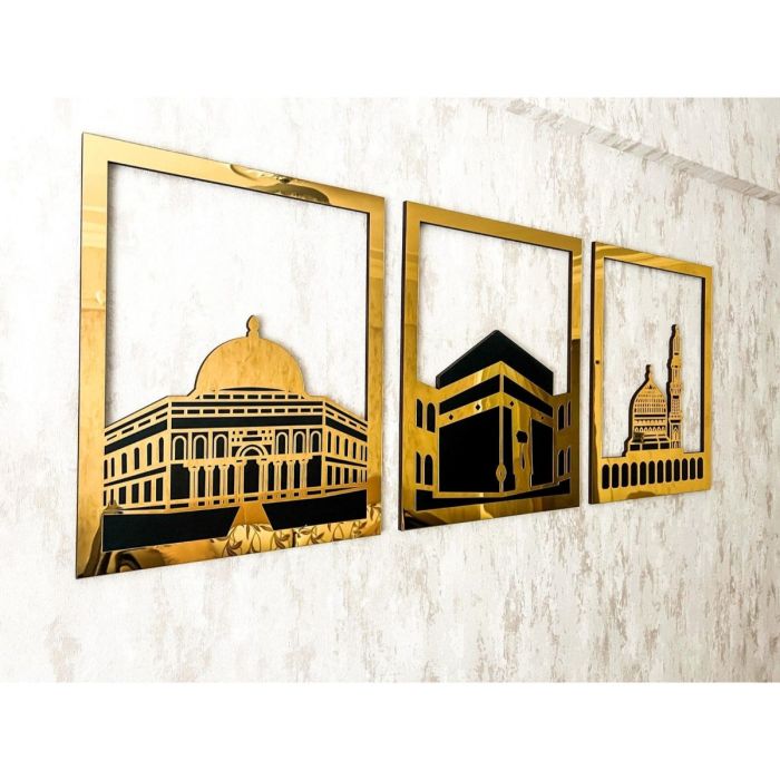 تُبرز هذه المجموعة من لوحات الأكريليك الجدارية ثلاثة من أعظم المعالم الإسلامية: المسجد الأقصى، الحرم المكي، والمسجد النبوي الشريف. مصنوعة من أكريليك عالي الجودة يجمع بين المتانة والتصميم العصري الأنيق. كل لوحة مصممة لتبعث على الإيمان والتأمل، وتكون في الوقت نفسه قطعة ديكور أنيقة للمنازل، المكاتب، أو أماكن الصلاة. بفضل تفاصيلها الراقية وقيمتها الروحية، تُعد هذه المجموعة هدية مميزة وإضافة خالدة لأي مساحة داخلية.