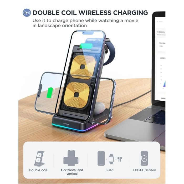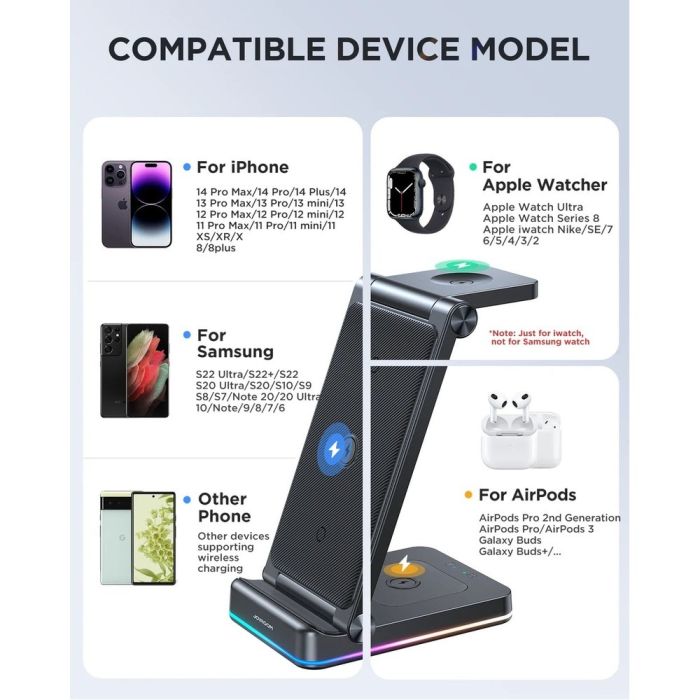 - قاعدة شحن لاسلكية قابلة للطي 3 في 1 من Joyroom