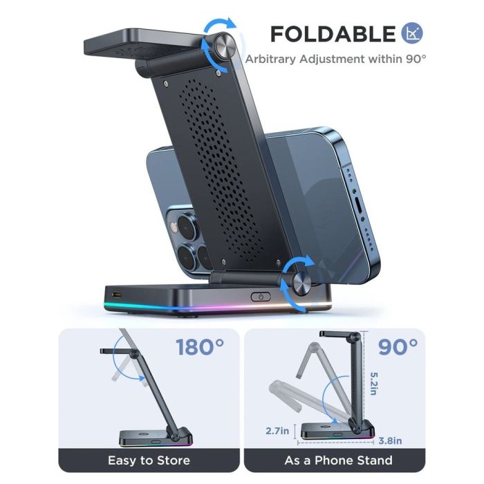 - قاعدة شحن لاسلكية قابلة للطي 3 في 1