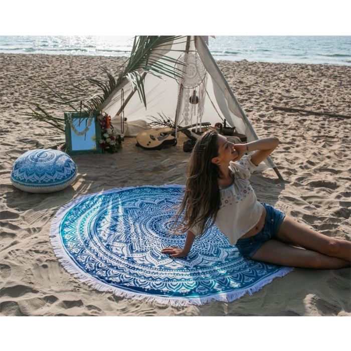 ستوفر بطانية الشاطئ المستديرة من كشته مظهرًا رائعًا وجذابًا لنزهتك