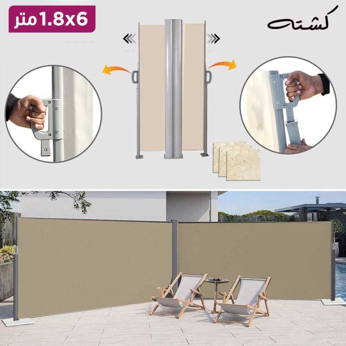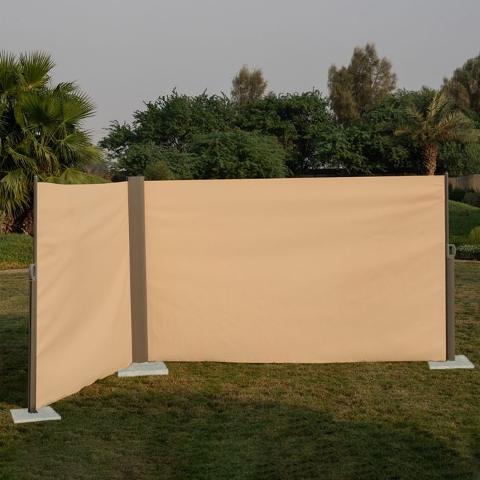 مظلة جانبية متينة وسهلة الاستخدام تمنحك خصوصية فورية وحماية فعالة من أشعة الشمس والرياح. بفضل تصميمها القابل للسحب، يمكنك فتحها أو إغلاقها بسهولة وفقًا لاحتياجاتك. القواعد الرخامية الثقيلة تمنحها استقرارًا فائقًا، مما يجعلها مثالية للأنشطة الخارجية