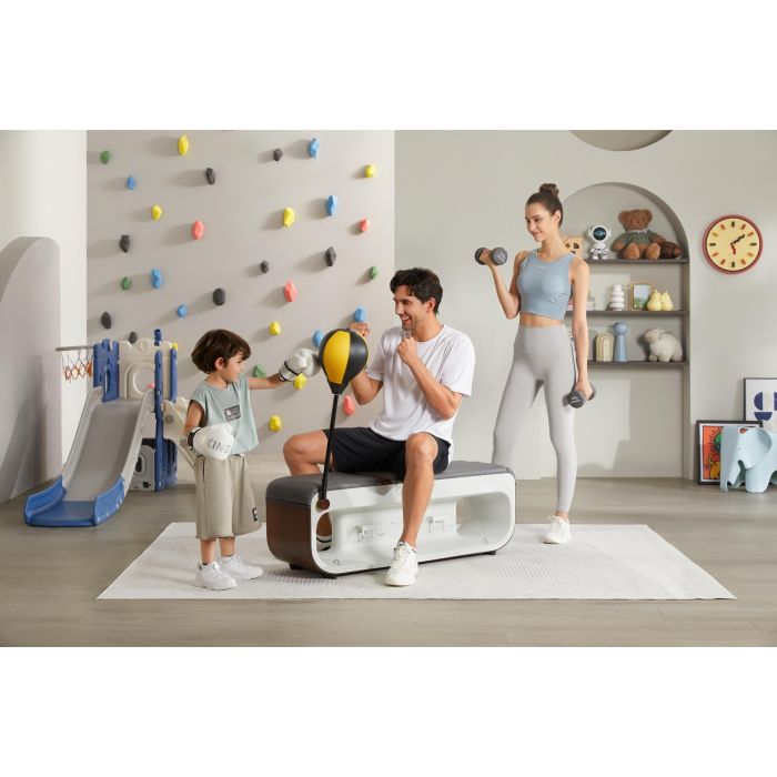 استعد لتحقيق أقصى استفادة من تمارينك. يأتي هذا المقعد مع مجموعة من المكونات المتنوعة التي تسهل عليك تنويع التمارين وتعزيز أدائك الرياضي. استمتع بتجربة تمرين مميزة مع المقبض المتعدد الاستخدمات، وحبال المقاومة بأوزان مختلفة، ,والبار للتدريبات المتنوعة ، والحبال المطاطية المرنة، وكرة الملاكمة ، والدمبلز ، وذراع التوازن لتدريب الأساسيات ومسند ظهر مدمج . و لضمان راحة وأمان مثاليين أثناء التمارين، يأتي المقعد مع مواصفات أساسية تضم ضمانًا للقوة بحمولة تصل إلى 150 كجم، ومسند للظهرمدمج، وتصميمًا متينًا من البلاستيك والخشب. اجعل من تمارينك تجربة ممتعة وفعّالة