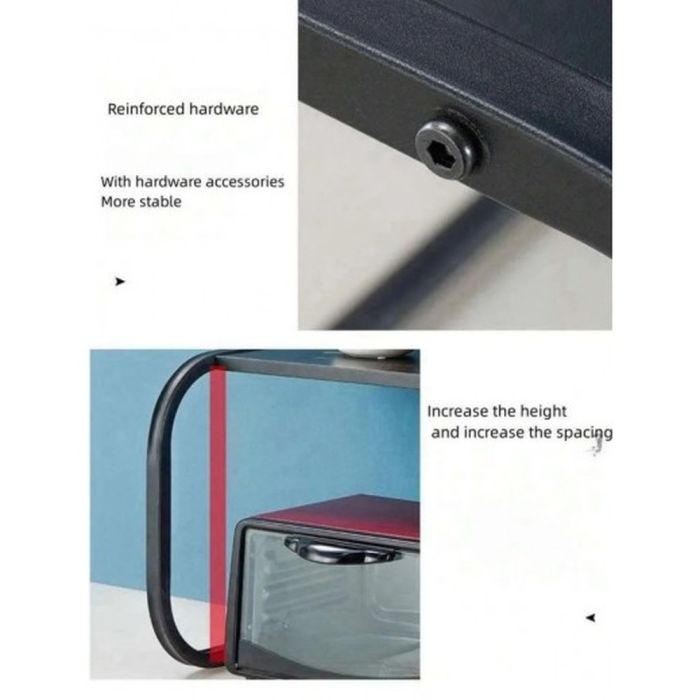 استغل مساحة مطبخك بذكاء مع هذا الرف المنظم والمزدوج للميكروويف. بفضل تصميمه القوي والأنيق، يمنحك مساحة تخزين إضافية فوق الميكروويف لتنظيم زجاجات الزيت، برطمانات التوابل، وأدوات المطبخ المختلفة
