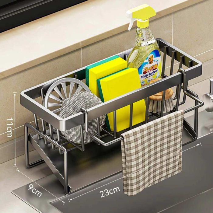 سلة تخزين أنيقة لحوض المطبخ مصنوعة من الاستيل الكربوني، توفر حلاً عمليًا لتنظيم أدوات التنظيف في المطبخ، تضمن المتانة والصلابة لتتحمل الاستخدام اليومي، تصميمها الأنيق يضفي لمسة جمالية على حوض المطبخ، وتساعد في الحفاظ على نظافة وترتيب المساحة، مما يجعلها الخيار المثالي لكل من يبحث عن الجودة والعملية في تنظيم أدوات المطبخ.