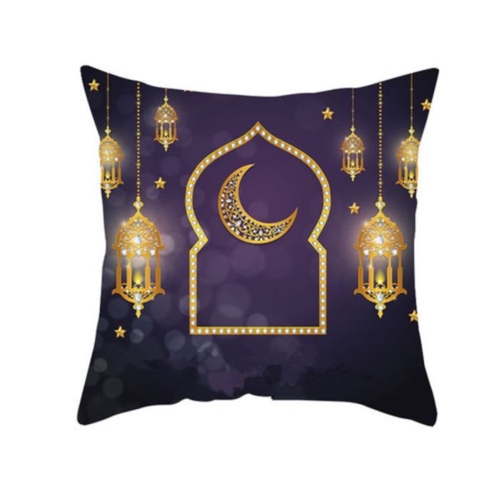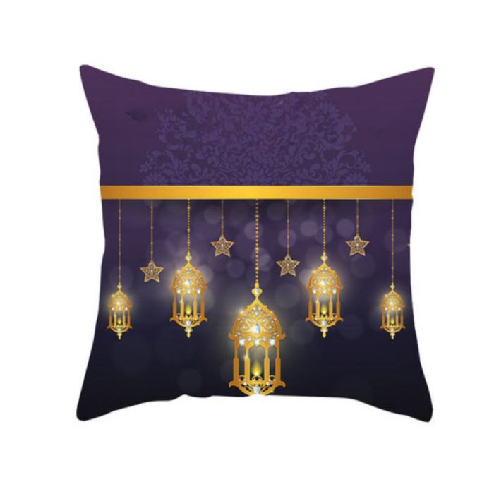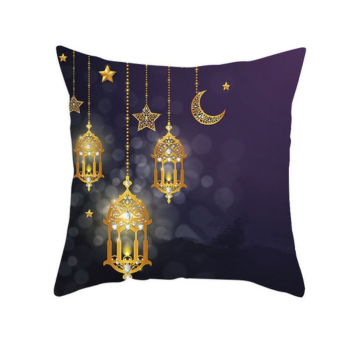 طقم غطاء وسادة بتصميم فوانيس 4 قطع مصنوع من خامة ناعمة بملمس مريح، يتميز بزخارف فوانيس وهلال تضفي أجواء احتفالية دافئة ولمسة أناقة متناغمة على الديكور وتعزز الإحساس بالراحة والرقي