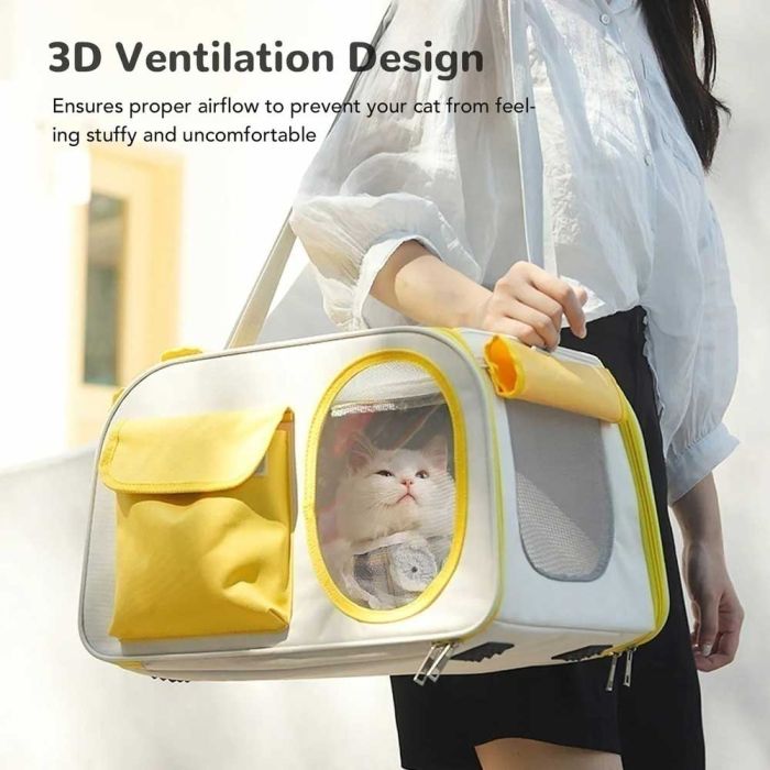 حقيبة ظهر جيدة التهوية للحيوانات الأليفة، بتصميم يوفر بيئة مريحة للحيوانات الأليفة الثقيلة. مزودة بفتحات تهوية شبكية كبيرة متعددة تسمح بدخول الهواء النقي.