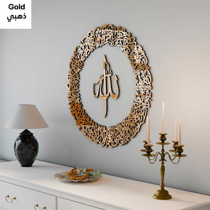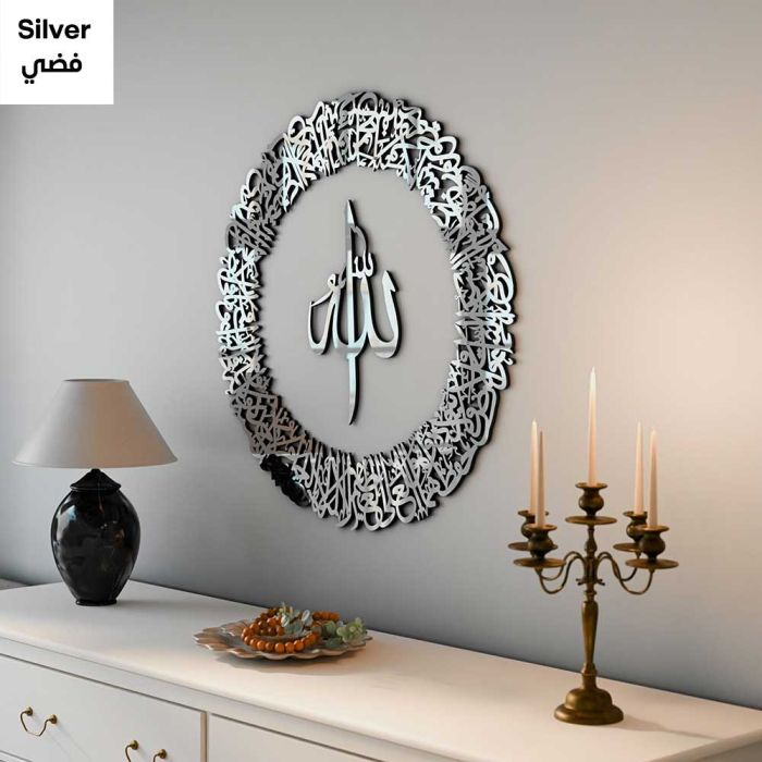 تُعد تحفة فنية بخط عربي أصيل، تحمل آية الكرسي من القرآن الكريم. صُنعت من معدن عالي الجودة لتدوم طويلاً، وتضفي على المكان شعورًا بالسكينة والإيمان والحماية. يتميز النقش بجماله ودقته، ليكون تذكارًا روحانيًا وقطعة فنية مميزة في الوقت نفسه. مثالية لغرف المعيشة، المكاتب، أو أماكن الصلاة، حيث تضفي لمسة من الجلال والروحانية.