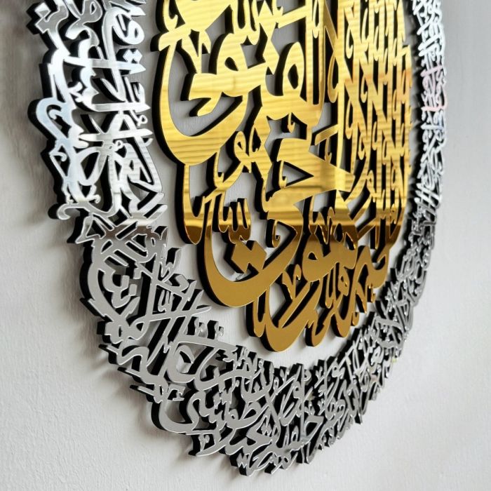 تُعد تحفة فنية بخط عربي أصيل، تحمل آية الكرسي من القرآن الكريم. صُنعت من معدن عالي الجودة لتدوم طويلاً، وتضفي على المكان شعورًا بالسكينة والإيمان والحماية. يتميز النقش بجماله ودقته، ليكون تذكارًا روحانيًا وقطعة فنية مميزة في الوقت نفسه. مثالية لغرف المعيشة، المكاتب، أو أماكن الصلاة، حيث تضفي لمسة من الجلال والروحانية.