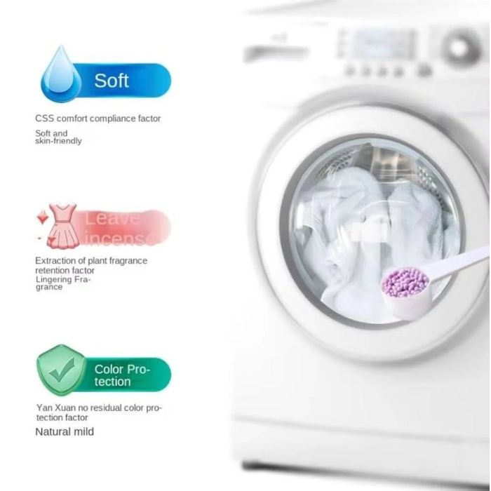 استمتعي بانتعاش يدوم طويلًا مع حبيبات الغسيل المعطرة. فقط أضيفي الكمية المناسبة في الغسالة في بداية دورة الغسيل، وستذوب الحبيبات تمامًا لتمنح ملابسكِ ومناشفكِ وأغطيتكِ رائحة منعشة تدوم لأسابيع.