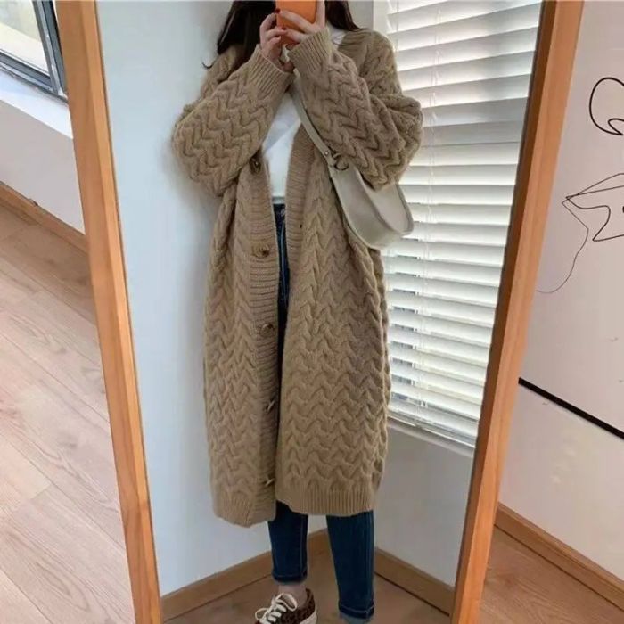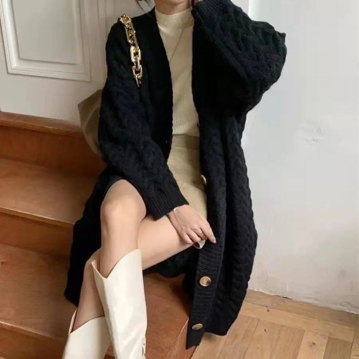 - كارديجان نسائي طويل بأكمام طويلة من الصوف بتصميم فضفاض وعصري