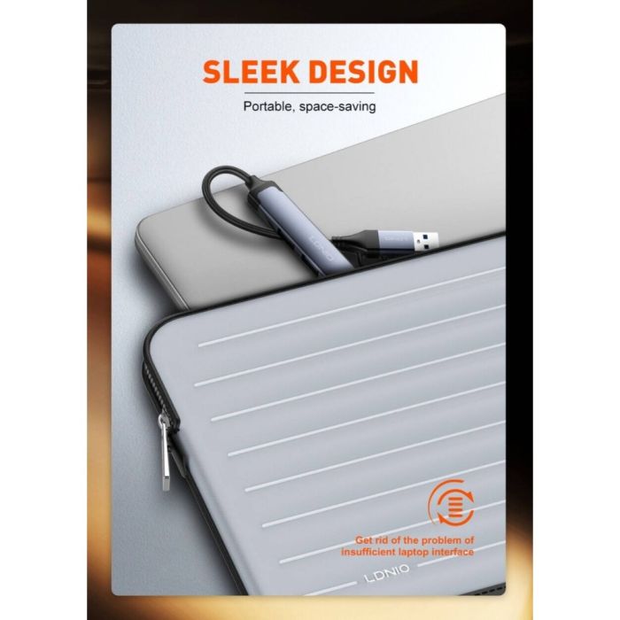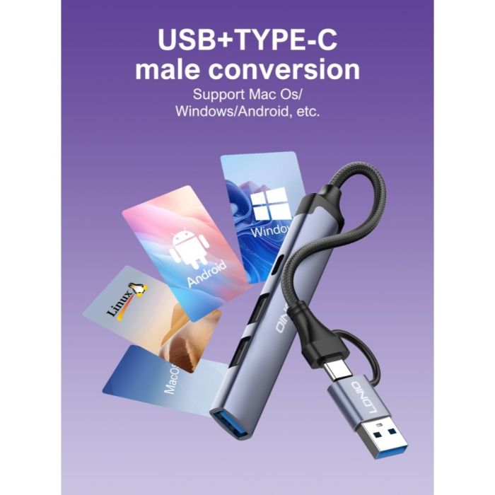زد من إنتاجيتك ووسّع إمكانيات أجهزتك مع محول متعدد المنافذ 4 في 1 بمنفذ Type-C من LDNIO، الحل المثالي لتوصيل العديد من الأجهزة باستخدام منفذ واحد فقط. يتميز بتصميم ذكي وكيبل Type-C مدمج يجعله متوافقًا مع معظم الأجهزة الحديثة، ويتيح لك تحويل منفذ Type-C إلى USB-A بسهولة ومرونة. صُنع من مواد عالية الجودة تجمع بين المتانة وخفة الوزن، حيث لا يتجاوز وزنه 35 جرامًا، ليمنحك أداءً مستقرًا وسريعًا في جميع الاستخدامات. يدعم نقل البيانات بسرعات تصل إلى 5 جيجابت/ثانية عبر منفذ USB 3.0، إلى جانب منفذي USB 2.0 لتوصيل المزيد من الإكسسوارات والأجهزة. استمتع باتصال سلس وموثوق في أي وقت وأينما كنت.