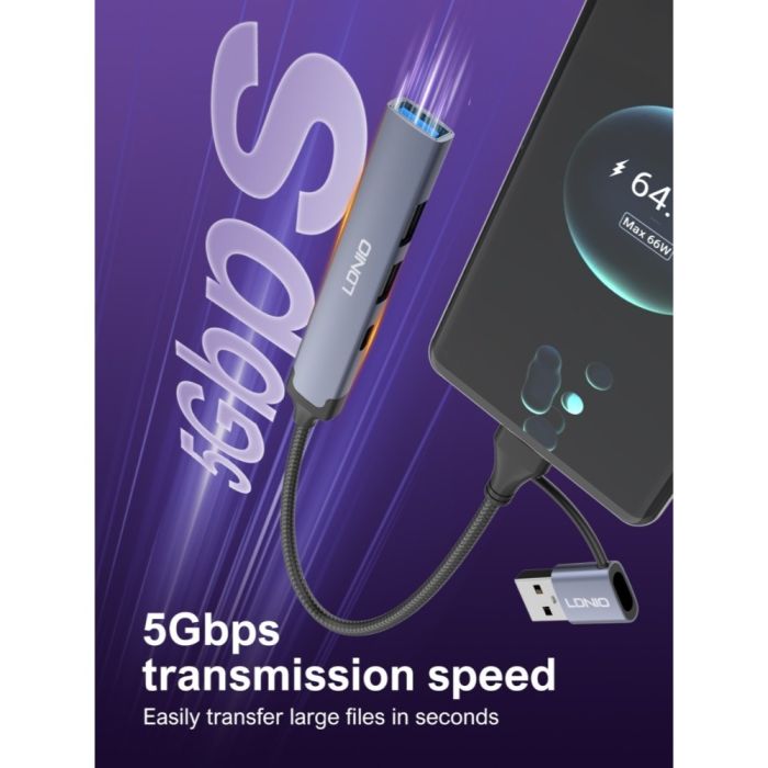 - محول متعدد المنافذ 4 في 1 بمنفذ Type-C من LDNIO