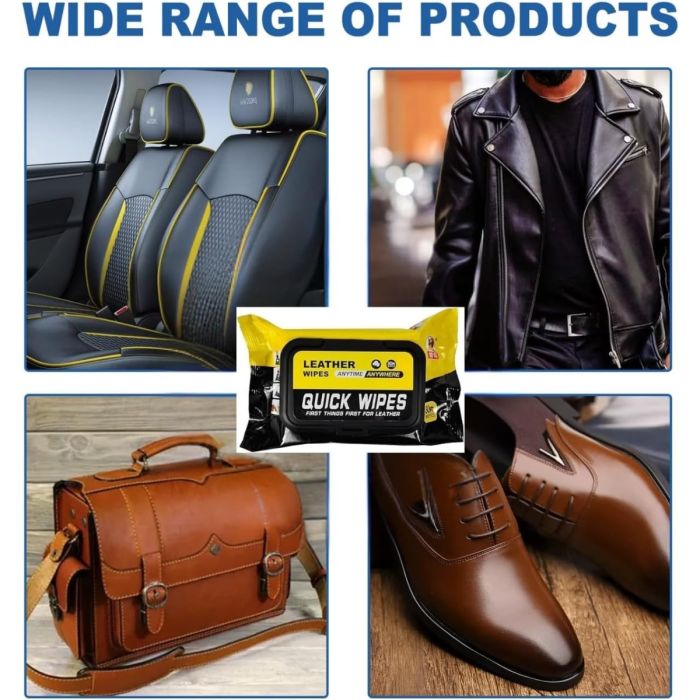 حافظ على لمعان ونظافة منتجاتك الجلدية مع مناديل التنظيف المبللة. فعالة وسريعة، لطيفة على الجلد الصناعي والطبيعي، مثالية للاستخدام اليومي أو أثناء السفر. لا تحتاج لأي منتجات إضافية، فقط امسح وتمتع بالنتيجة.