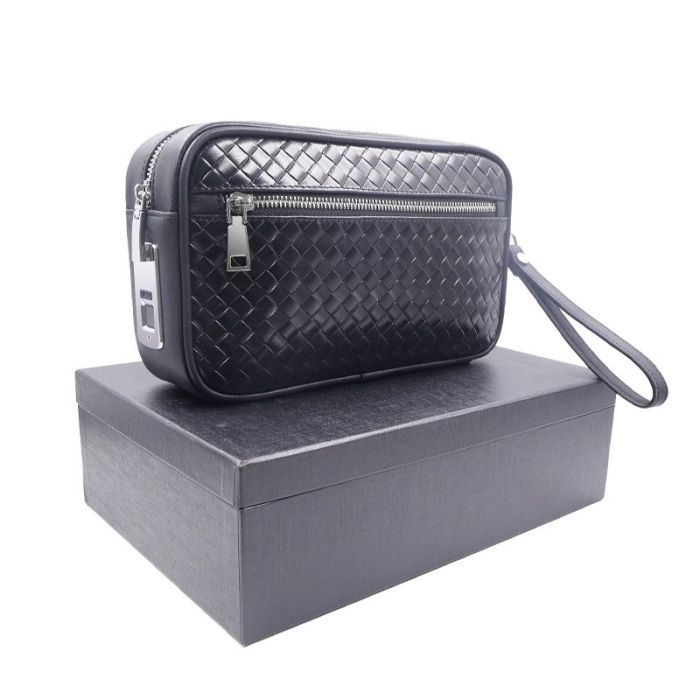 حقيبة يد فاخرة من الجلد الطبيعي مزودة بقفل ببصمة الإصبع، مصممة خصيصًا لرجال الأعمال الذين يجمعون بين الأناقة والأمان. مصنوعة من طبقة الجلد الطبيعي الأولى لضمان المتانة والمظهر الراقي. نظام القفل بالبصمة يحافظ على مقتنياتك بأمان، بينما يمنحك التصميم العصري حقيبة عملية، وتوفر حلاً حديثًا لحماية النقود والبطاقات والمستلزمات الأساسية.