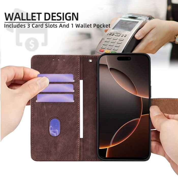 - غطاء حماية جلد مع حافظة بطاقات لهواتف أيفون