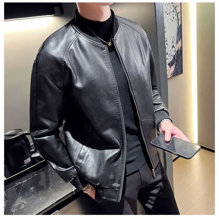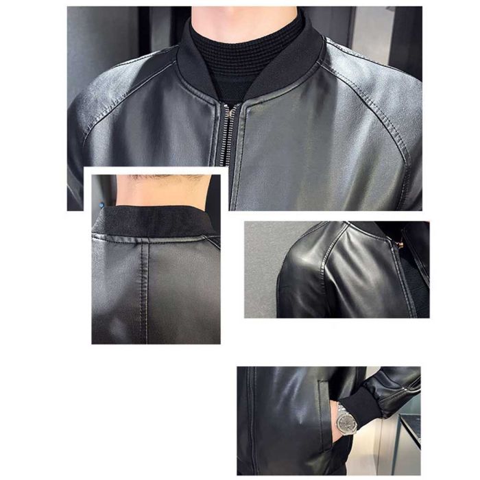 جاكيت جلد بسحاب للرجال مصنوع من خامة جلد أنيقة تمنح مظهر قوي، تصميم بسحاب عصري، قصة متناسقة تعزز الإطلالة الرجولية، مناسب للارتداء اليومي الأنيق