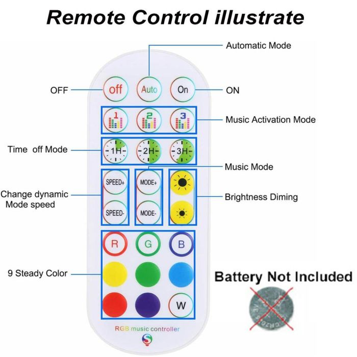- الضوء: أبيض و الوان RGB