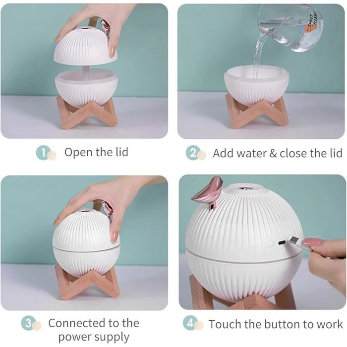 - ترطيب مستمر حوالي 4 ساعات/ترطيب متقطع حوالي 8 ساعاتمزود بمصباح LED ليلي إبداعي هادئ.
