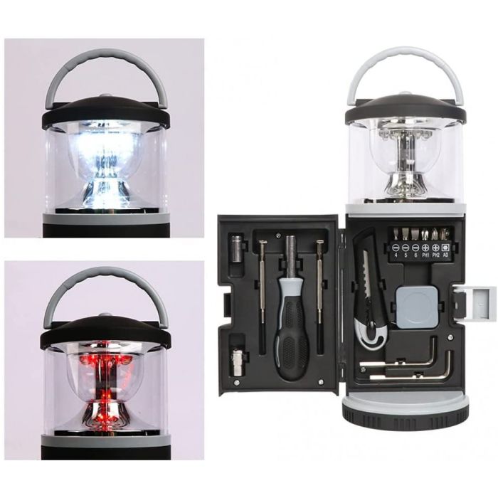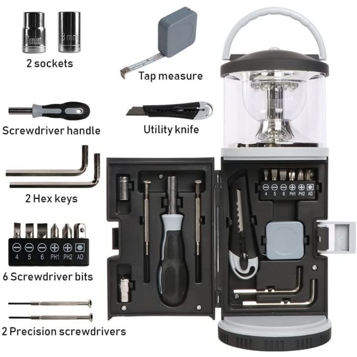- تجمع بين مصباح LED وأدوات يدوية أساسية في مجموعة واحدة مدمجة.