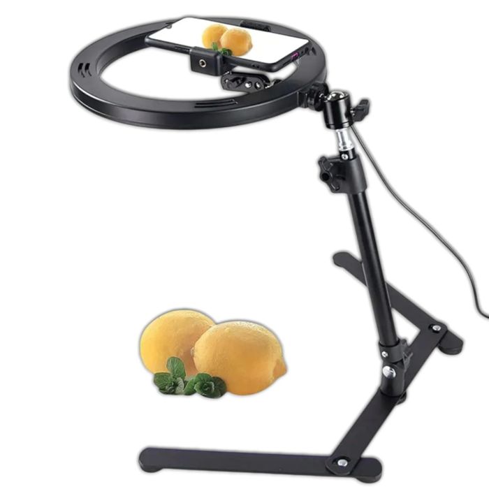 - إضاءة حلقيّة LED مع ستاند ثلاثي وستاند الهاتف