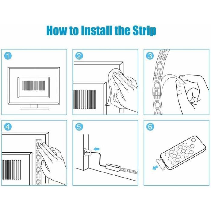 - الشريط اللاصق ذاتي اللصق لشريط الإضاءة USB يجعل التركيب سهلاً. لن تحتاج إلى أي أدوات خاصة لتحقيق إعداد يبدو احترافيًا