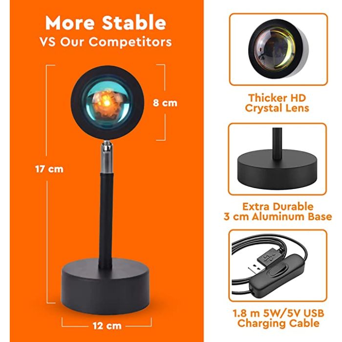 - مصباح LED لعرض غروب الشمس يدور بزاوية 360 درجة