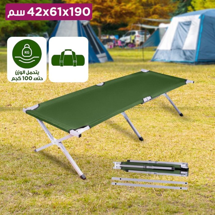 - سرير معدني قابل للطي للمخيم قياس 190 × 61 × 42 سم