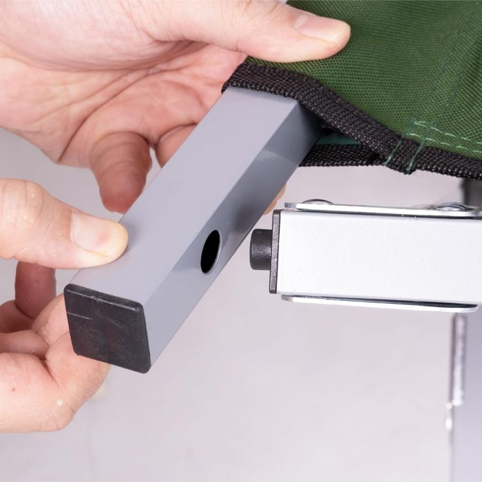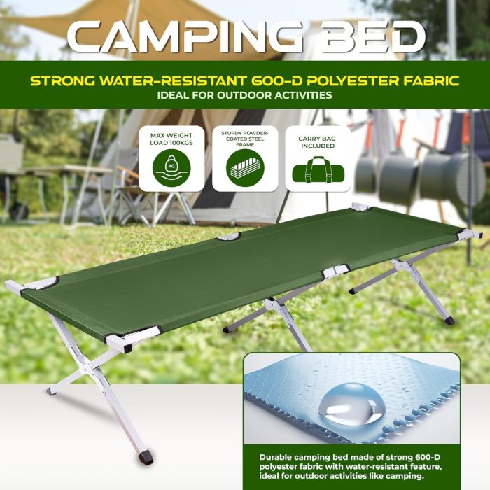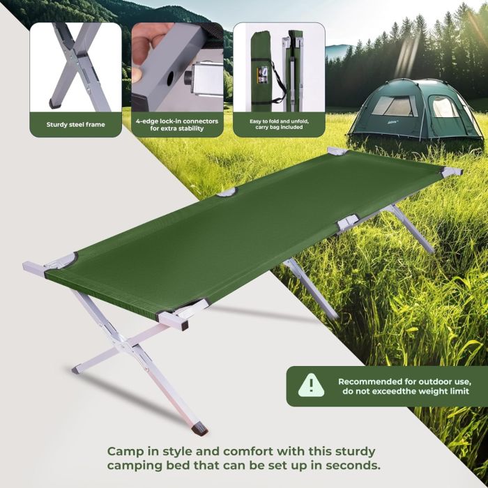 استمتع بالاسترخاء مع هذا السرير المعدني القابل للطي سواء كنت المخيم، السفر، الحداق أو تستمتع بنزهة أو تقضى وقتاً في الفناء، فهذا السرير يضمن الراحة والرفاهية. خفيف الوزن وقابل للحمل بوزن 6 كجم فقط، كما يمكن طيه بسهولة في الحقيبة المرفقة والمزودة بحزام كتف، مما يجعله مثالياً لجميع مغامراتك. مصنوع من مواد شديدة التحمل مع إطار أنبوبي من الفولاذ القوي وقماش بوليستر 600D مقاوم للماء وطلاء PE لمزيد من الراحة وسهولة التنظيف