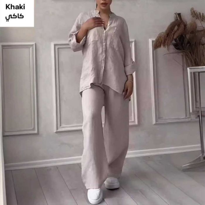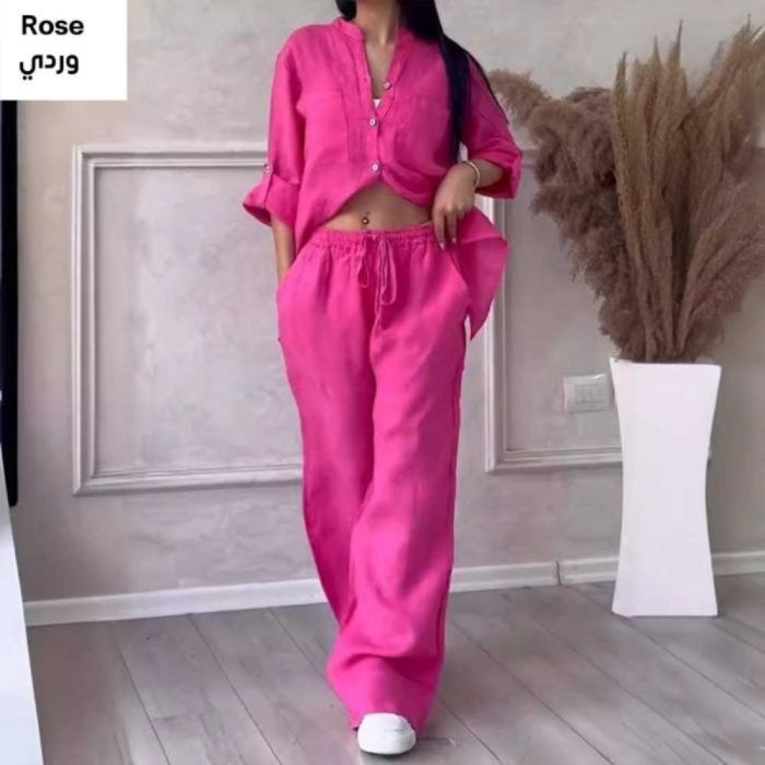 صفقة اليوم هي طقم قميص كتان بأكمام طويلة وبنطلون واسع الساقين - متوسط