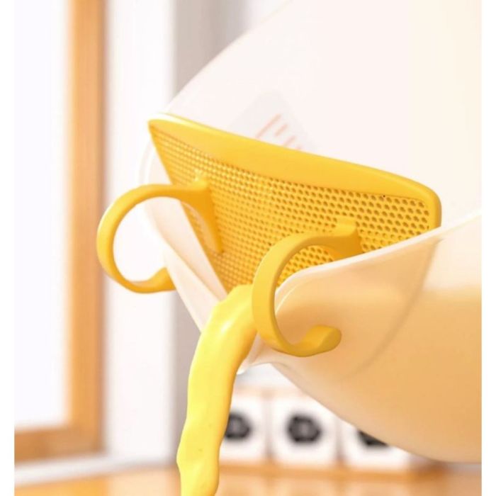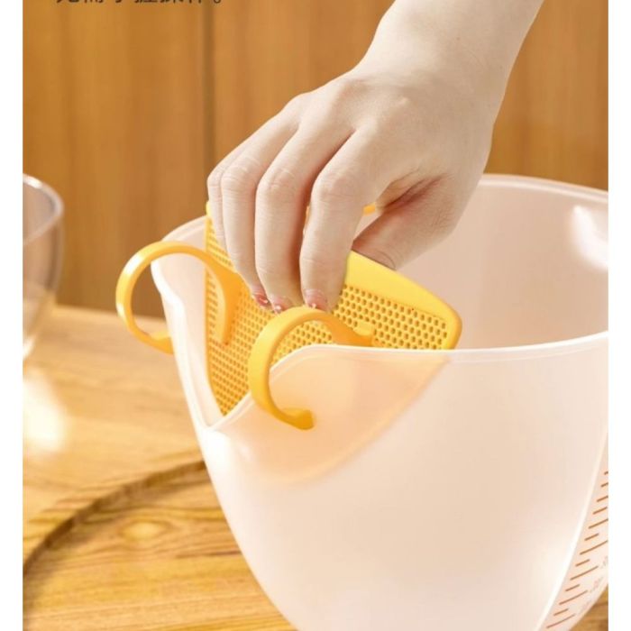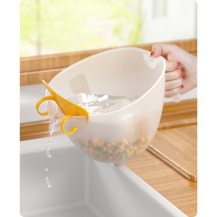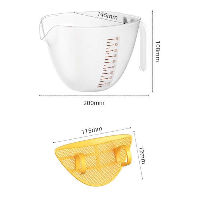 كوب قياس لتصفية السوائل مع فلتر مصنوع من بلاستيك متين، يتيح تصفية السوائل بسهولة، تصميم مريح للاستخدام اليومي، مناسب لغسل الأرز والخضار والفواكه، مع فلتر مدمج يساعد على انسياب الماء بشكل أنيق