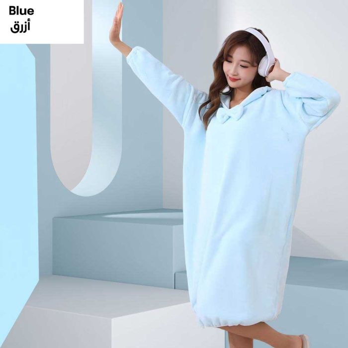 - روب حمام مخملي طويل بغطاء رأس للسيدات