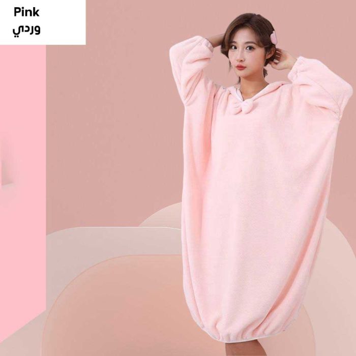 روب حمام مخملي طويل بغطاء رأس للسيدات مصنوع من مخمل مرجاني سميك، يمنح دفئًا ونعومة فائقة مع امتصاص عالي للماء، تصميم واسع بأكمام طويلة يضفي راحة وأناقة داخل المنزل