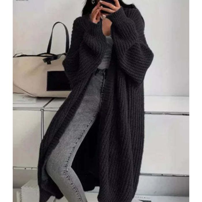 - كاردجان شتوي طويل بقصة واسعة للسيدات