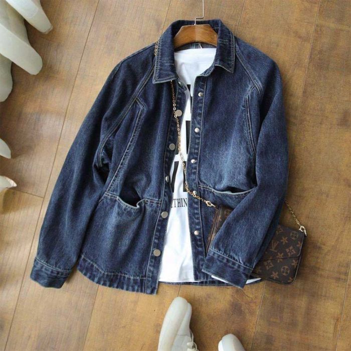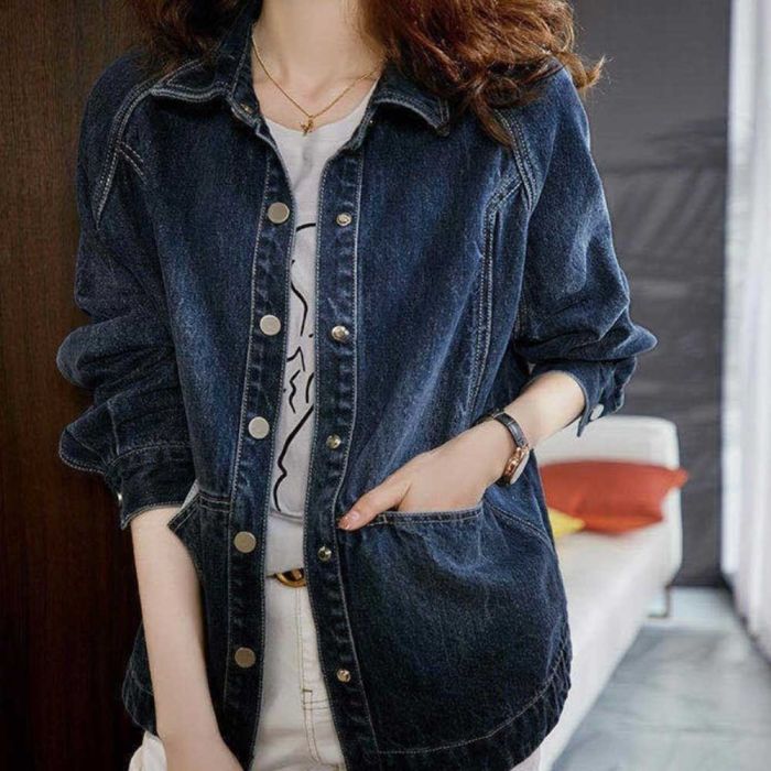 جاكيت جينز أنيق فضفاض بأكمام طويلة للسيدات