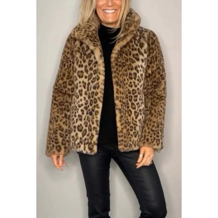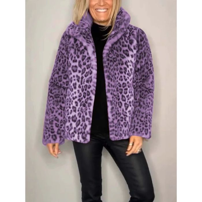 - جاكيت شتوي فرو بتصميم Leopard وأكمام طويلة للسيدات