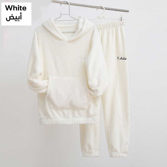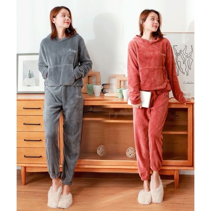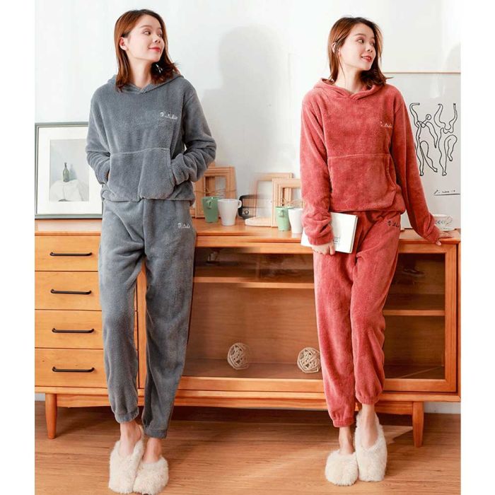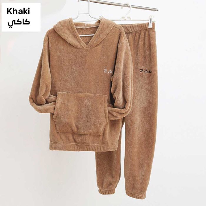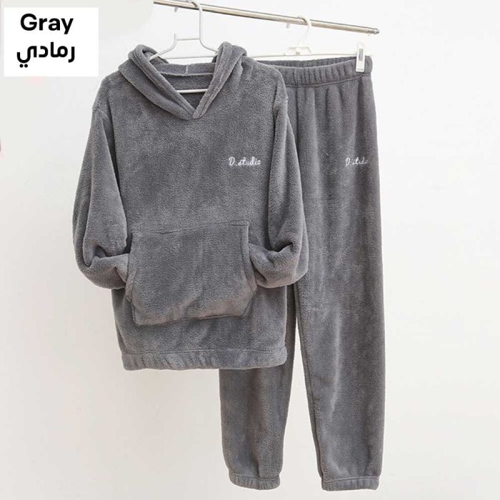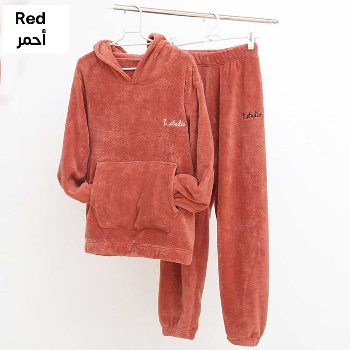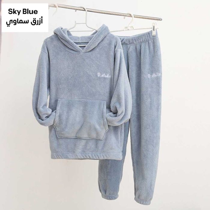 - طقم بيجامة شتوى بأكمام طويلة وغطاء راس للسيدات