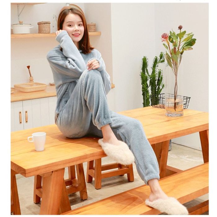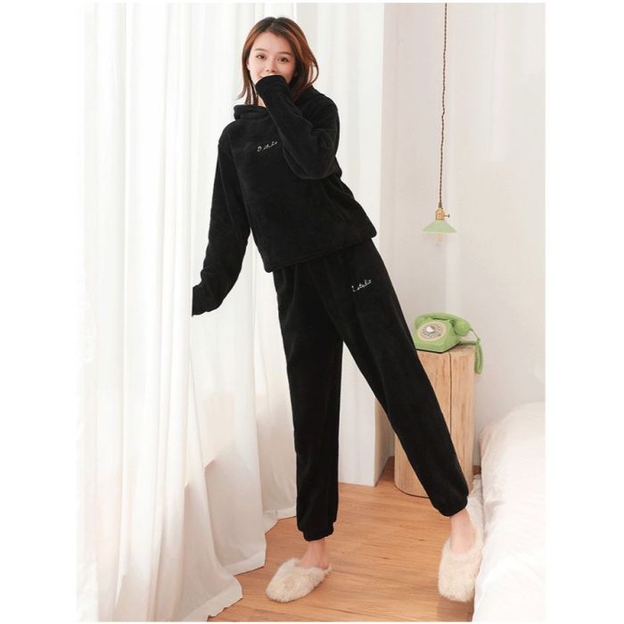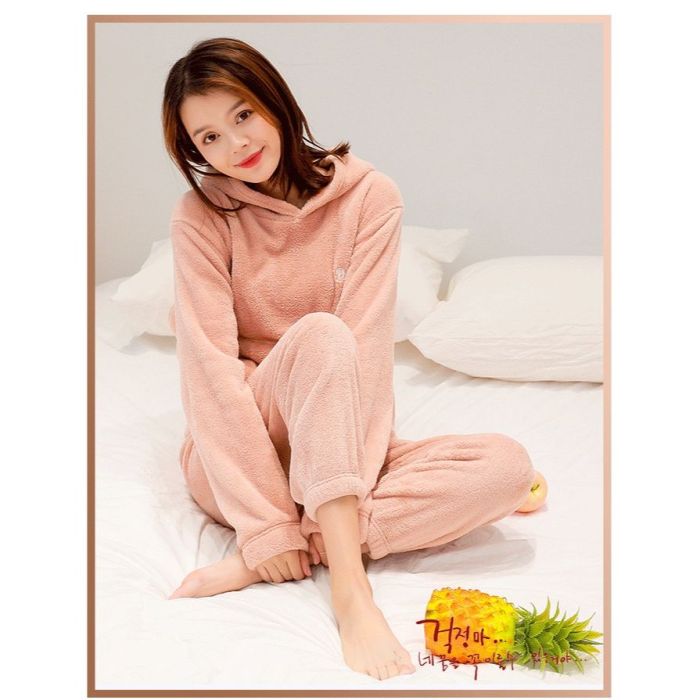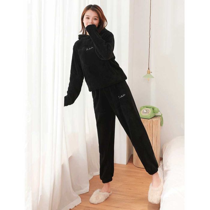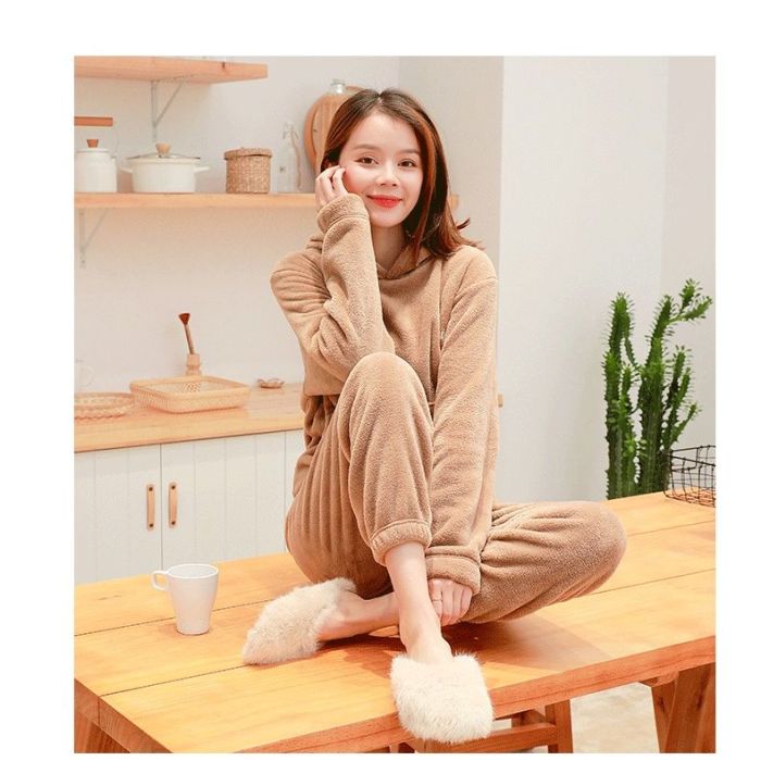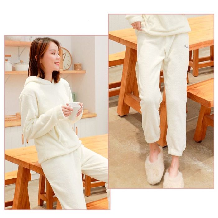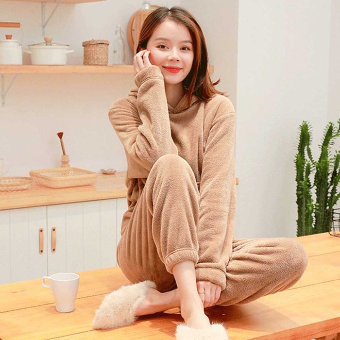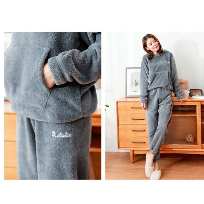 - طقم بيجامة شتوى بأكمام طويلة وغطاء راس للسيدات