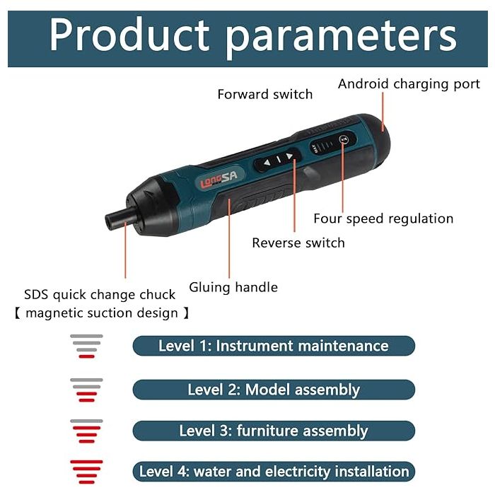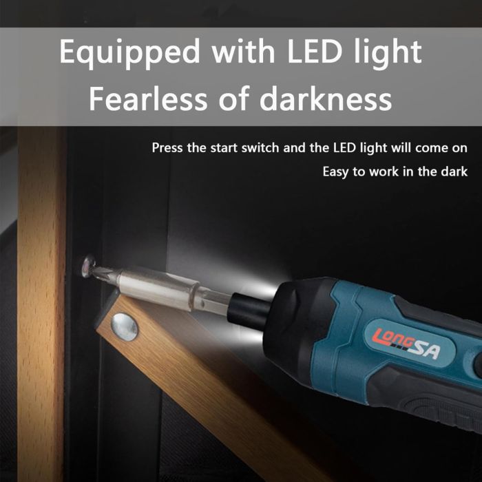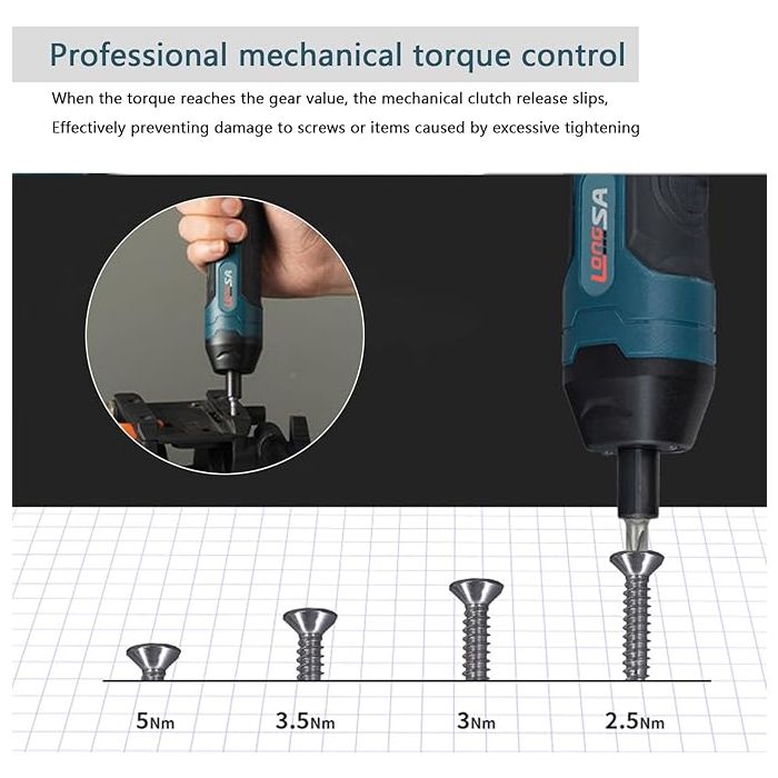 - طقم مفكات براغي Longsa كهربائية 20 قطعة قابلة لإعادة الشحن 500 مللي أمبير مع 3 مستويات للدوران ومؤشر LED