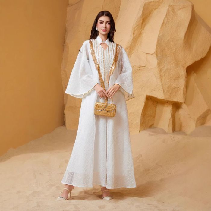 - يتميز بتصميم عربي فضفاض يمنح الإطلالة طابعاً راقياً ومحتشماً