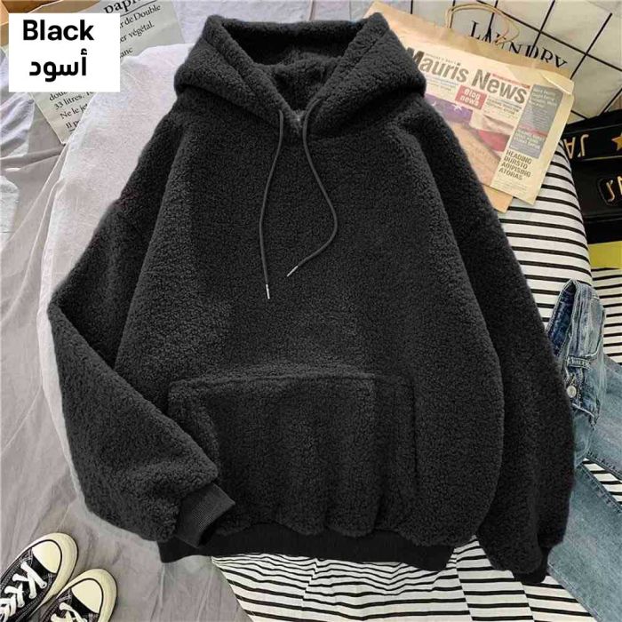 - سويتشيرت صوف فضفاض بغطاء رأس للسيدات