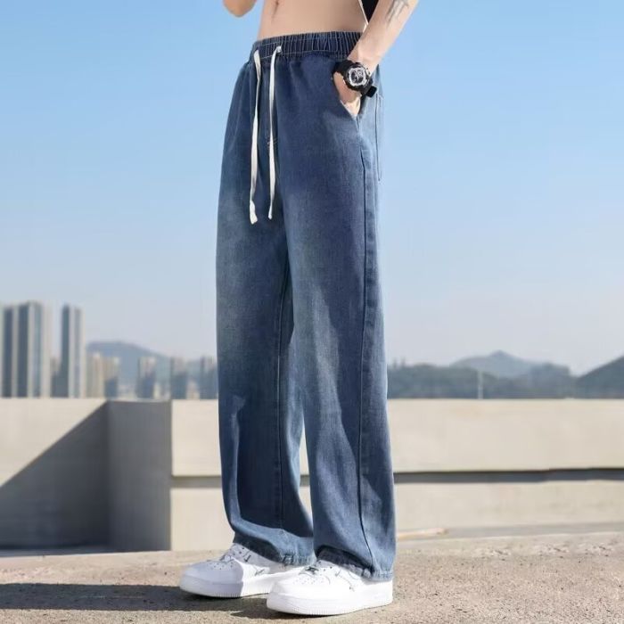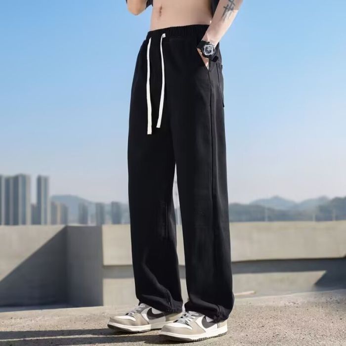 - بنطلون كاجوال فضفاض مستقيم بخصر مطاطي للرجال