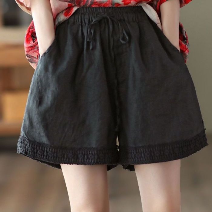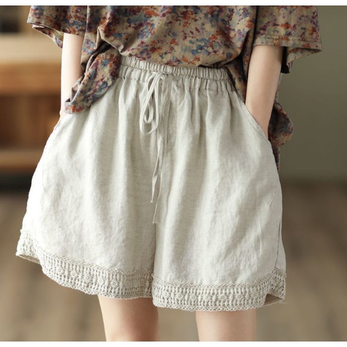 شورت صيفي فضفاض من القطن والكتان والكروشيه للسيدات